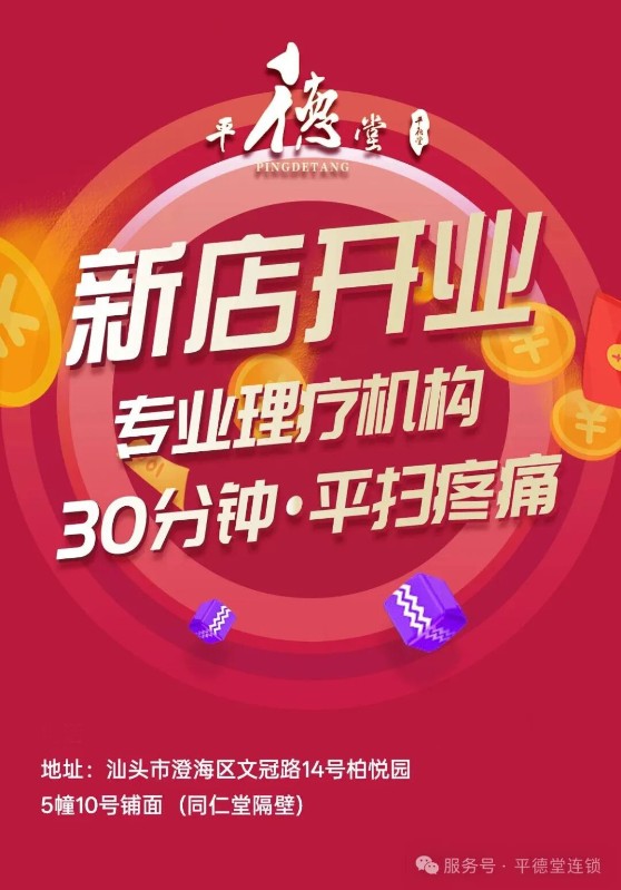 平德堂,是一家致力于传统中医理疗文化升华的大健康理疗平台,运用公司自主研发的当今世界天花板的物理智能理疗仪,为肩周炎、富贵包、颈椎病、关节炎、腰肌劳损、腱鞘炎、痛经、肌肉肿胀、扭伤挫伤、痛经、通风包等疼痛类疾病提供优效解决方案,帮助患者过上无痛新生活,实现系统身体康复管理。