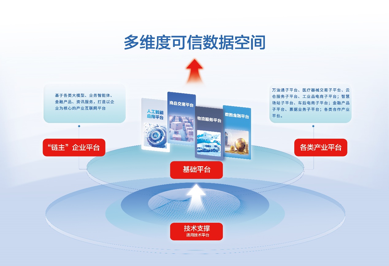 产业互联网与AI的深度融合,不仅在于技术创新,更在于生态协同。可信数据空间作为核心价值引擎,驱动着“多平台+全生态”架构的运转。这一点通过万联易达构建的产业互联网生态系统也能得到有效印证。