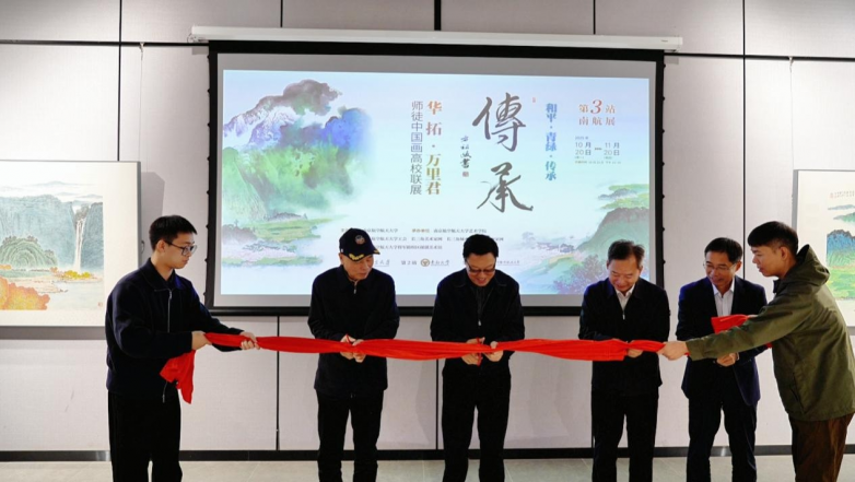 10月20日下午,“和平·青绿·传承——南航建校73周年华拓·万里君师徒中国画展”在南京航空航天大学将军路校区砚湖美术馆开幕。作为华拓・万里君师徒中国画展系列联展的第三站,此次展览不仅为南航73周年校庆增添了浓厚的文化氛围,更搭建起中华优秀传统文化与校园教育融合的桥梁。