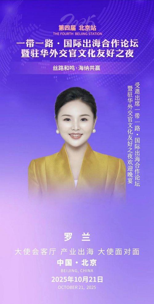 2025年10月21日,以“丝路和鸣 海纳共赢”为主题的第四届“一带一路·国际出海合作论坛暨驻华外交官文化友好之夜”在北京盛大启幕。卓越的美育推动者、臻尚美创始人、中国东方文化研究会美育工作委员会副会长罗兰女士受邀出席,并与各国驻华外交官、企业及文化界领袖齐聚“大使会客厅”,共同见证“东方美学产业联盟”的揭牌启航,围绕文化互通、产业协作与文明互鉴等核心议题展开深度交流,展现中国文化产业在全球化合作中的创新与担当。