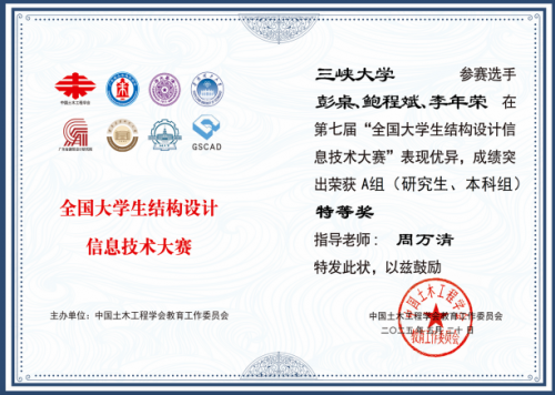 大国重器的锻造,需要在一线实战中反复淬火。彭桌积极投身于各类高水平学科竞赛,将理论应用于解决实际工程问题的前沿。在结构设计信息技术大赛的舞台上,他带领团队成员通力协作,用精巧的模型诠释对力与美的理解,取得国家特等奖,荣获全国第五名。在大学生创新创业大赛中,他尝试将土木与人工智能、大数据交叉融合,探索行业变革的新方向,同时,通过参与数学建模,培养了他将复杂工程问题抽象为数学模型的独特能力,使其具备了运用数据驱动和算法优化来赋能未来工程建设的“智能”视野。这些经历极大地锤炼了他的创新思维和解决复杂工程问题的能力。