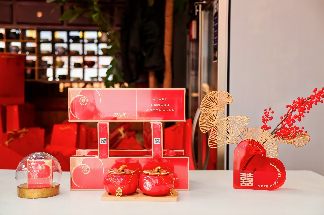 在“双喜分享”环节,广东中烟工业有限责任公司的勿忘我品牌代表向与会嘉宾全面介绍了双喜勿忘我产品。据介绍,该款产品特别设计了独特的微甜滤嘴,巧妙契合并寓意爱情的美好与甜蜜。其品牌广告语“情深意切勿忘我”更是精准传递了对恒久爱情的深切祝福,使其成为婚礼场合的优选喜烟。更引人注目的是,广东中烟推出的喜烟定制服务,专为前往青海旅行结婚的新人打造。新人可将他们在青海记录的幸福瞬间印制于烟包之上,使产品本身固有的红色“囍”字与新人的甜蜜形象完美融合,创造出一份独具纪念意义的个性化礼品,让亲友共同分享新人的喜悦与幸福。