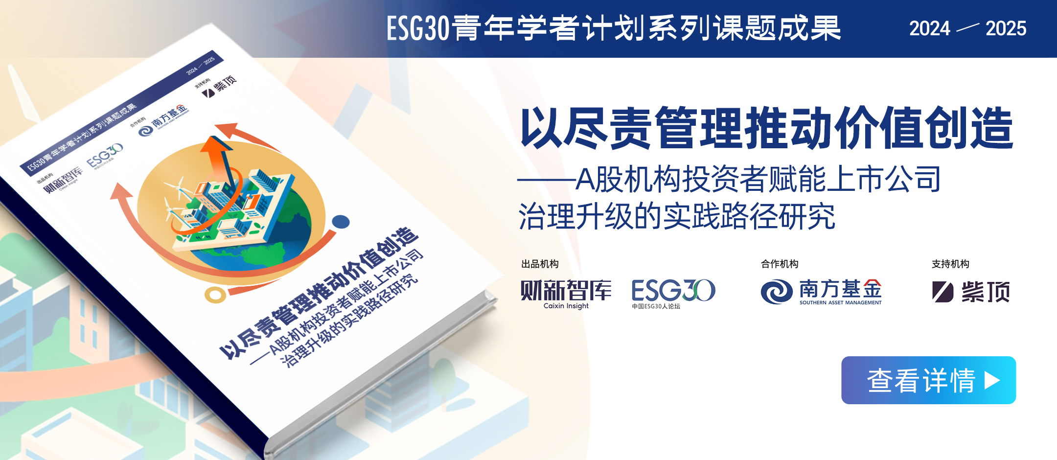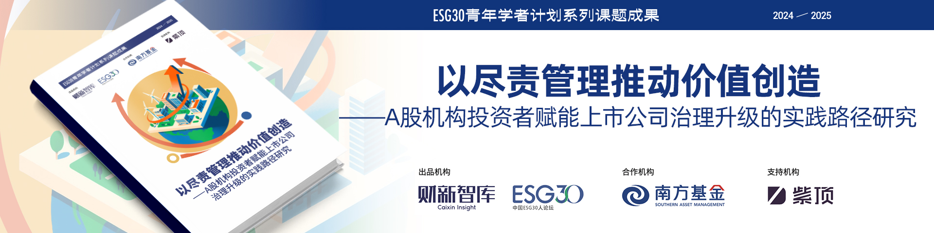 2025年10月,财新智库、ESG30联合南方基金发布了《以尽责管理推动价值创造——A股机构投资者赋能上市公司治理升级的实践路径研究》报告(以下简称“报告”),这是财新智库机构投资者系列ESG课题报告的第三部。前两部报告分别构建ESG投资理论框架、聚焦气候转型行动逻辑,而此次报告则将视角聚焦至机构投资者的“尽责管理(Stewardship)”这一核心抓手,系统解答了机构投资者如何突破传统治理不足,通过主动参与为上市公司创造长期价值的关键命题。