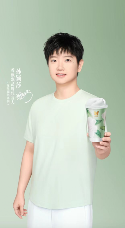 近日,国民奶茶品牌香飘飘官宣孙颖莎为原叶现泡系列的代言人。