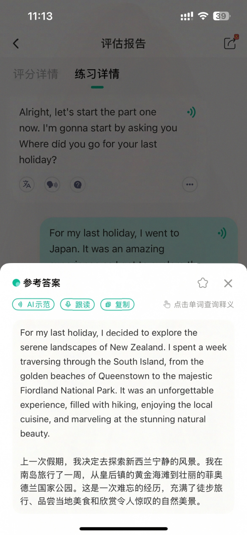 真人级AI语音和音素级智能纠错功能则解决了传统学习中反馈滞后和不精准的问题。系统不仅能识别明显的发音错误,还能捕捉细微的语调、重音问题,提供针对性改进建议。