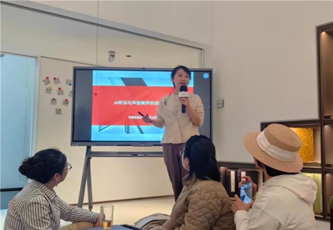 在艺术展最后一期学术与艺术沙龙上,赵琳教授还分享了《AI听诊与声音美学的三个维度》。她通过AI技术现场为观众“听诊”音色,帮助大家识别自身音色特点,还传授“在节奏与韵律中放松身心,调配不同的音色与情感色彩”的使用方法,让声音从“简单信息载体”升级为“修复关系的催化剂”,为破解现代社会关系困局提供新思路。