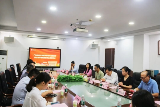 广东财经大学党委常委、副校长张凯,学校校友工作与社会合作办公室主任段丹,经济学院院长聂普焱、党委书记钟雄星及师生代表;金程教育董事长汤震宇、全国渠道总监程江聪、广州公司总经理郭成彬、广州运营总监张津铭等出席仪式,仪式由经济学院党委书记钟雄星主持。仪式现场,双方围绕“深化科研合作”“联合培养人才”两大核心议题充分探讨,在合作方向上形成共识。金程教育将在未来三年内持续捐赠,设立专项奖教学金,用于支持广东财经大学经济学院在科研创新与人才培养方面的持续发展。
