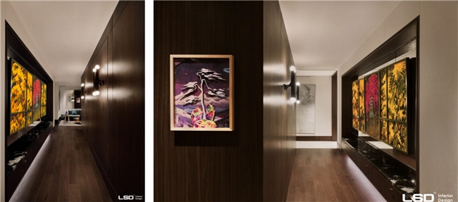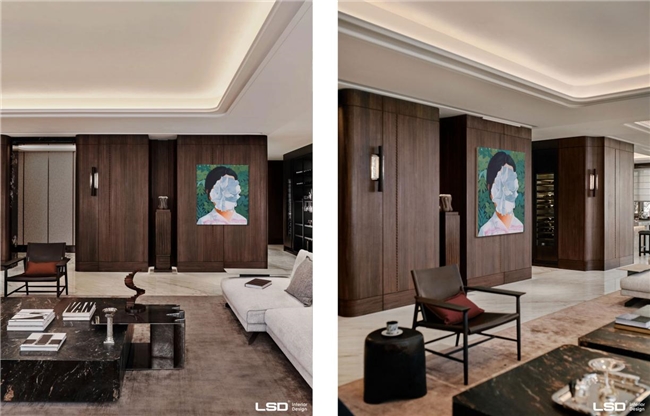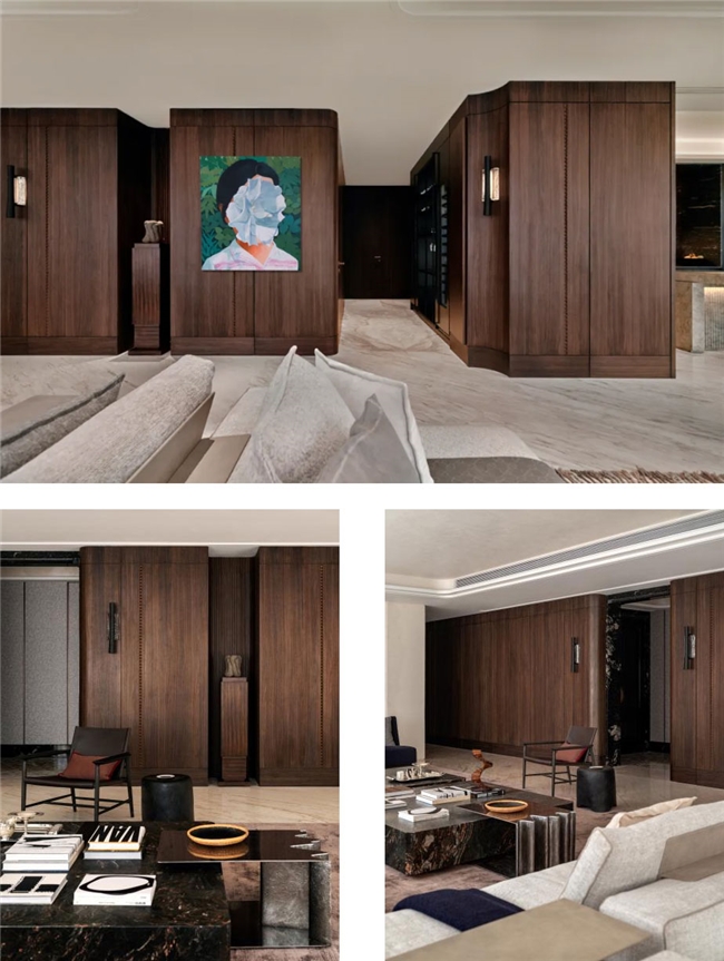 木饰面的色彩和形态非常连贯,整个墙面不仅为空间提供了连续性,也让艺术在空间中的加载产生更多想象。