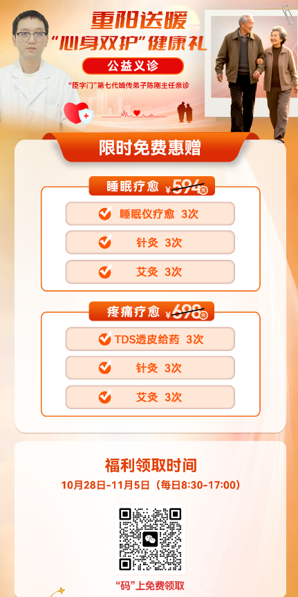重阳送暖,限时惠赠:针对睡眠障碍、身体疼痛等常见老年慢病,华慧心医定制 “检查 + 调理 + 指导” 套餐,用暖心的温情回馈,守护您与家人的健康深秋。