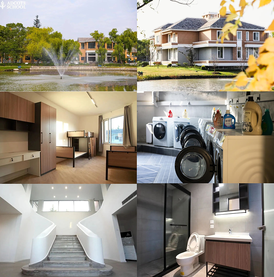 校区占地90000平方米,设有图书馆、多功能厅、足球场、攀岩墙、高尔夫平台、健身房、STEM教室,艺术中心,科创中心,黑匣子剧场,气膜体育馆,国际会议中心等等丰富的教育教学设施。作为一所知名的上海国际学校,阿德科特多样化的教学空间设计,既保障了学校多样化课程的教学空间,同时充分满足学生的运动需求。
