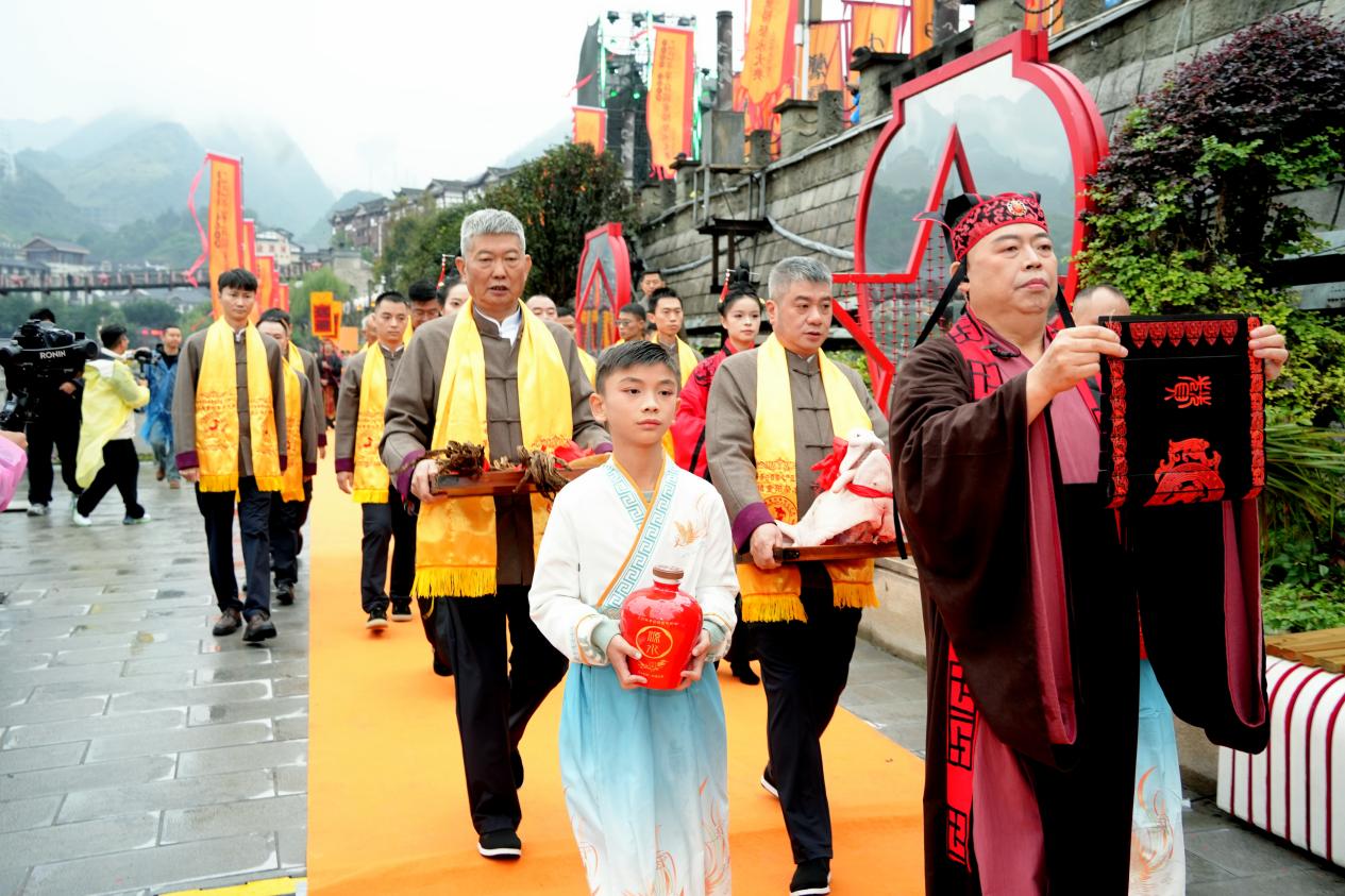 上午9时39分,大典随鸣鼓启祭正式开始。取自赤水河心的“圣水”被恭迎入场,童声合唱《赤河谣》,纯净悠远的歌声寄托着酒都人民对母亲河的感恩与敬畏。主祭官带领参祭人员依次完成净手、熏香、献酒等礼仪,随后诵读祭文,字字句句承载着酿酒人对自然的敬畏与感恩。“分泽源水”环节上,圣水被分予产区代表,寓意赤水福泽润泽众企、同源共酿。