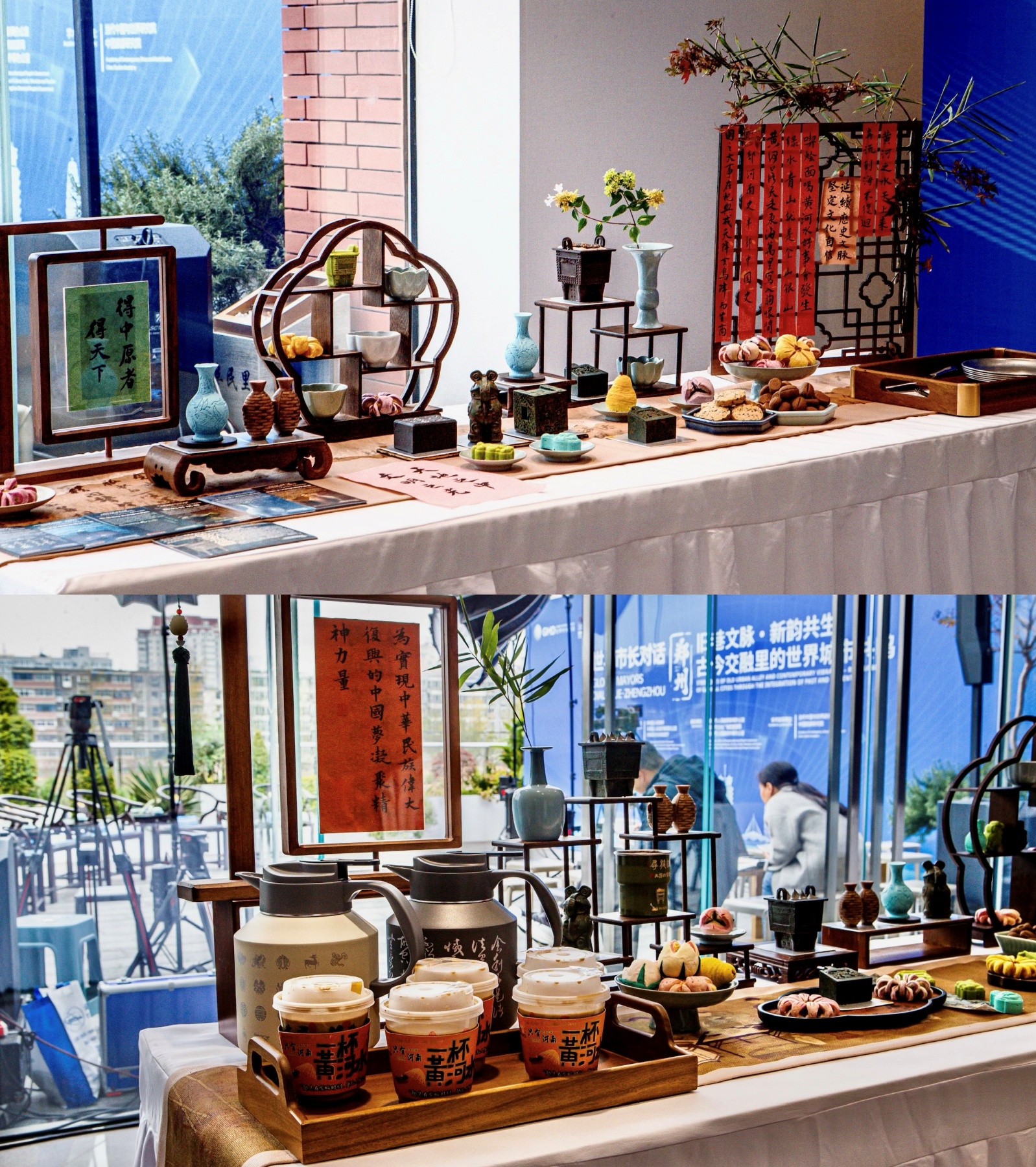 郑州副市长张艳敏向多国城市市长分享郑州城市更新、文化传承与历史保护的平衡共赢经验。在茶歇环节,她向国外市长们介绍道:“这些在餐桌上的文物甜品也是微型的文化展馆,是最具有河南特色郑州特色的东西方融合下午茶。”