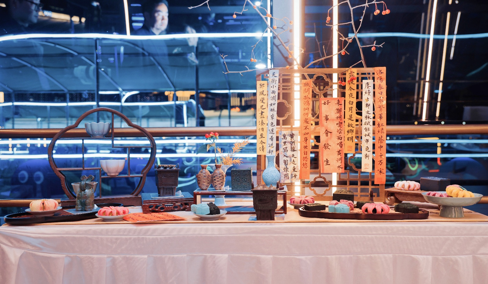 如意湖游船上河南文物甜品台(图:郑州市郑东新区宣传部)