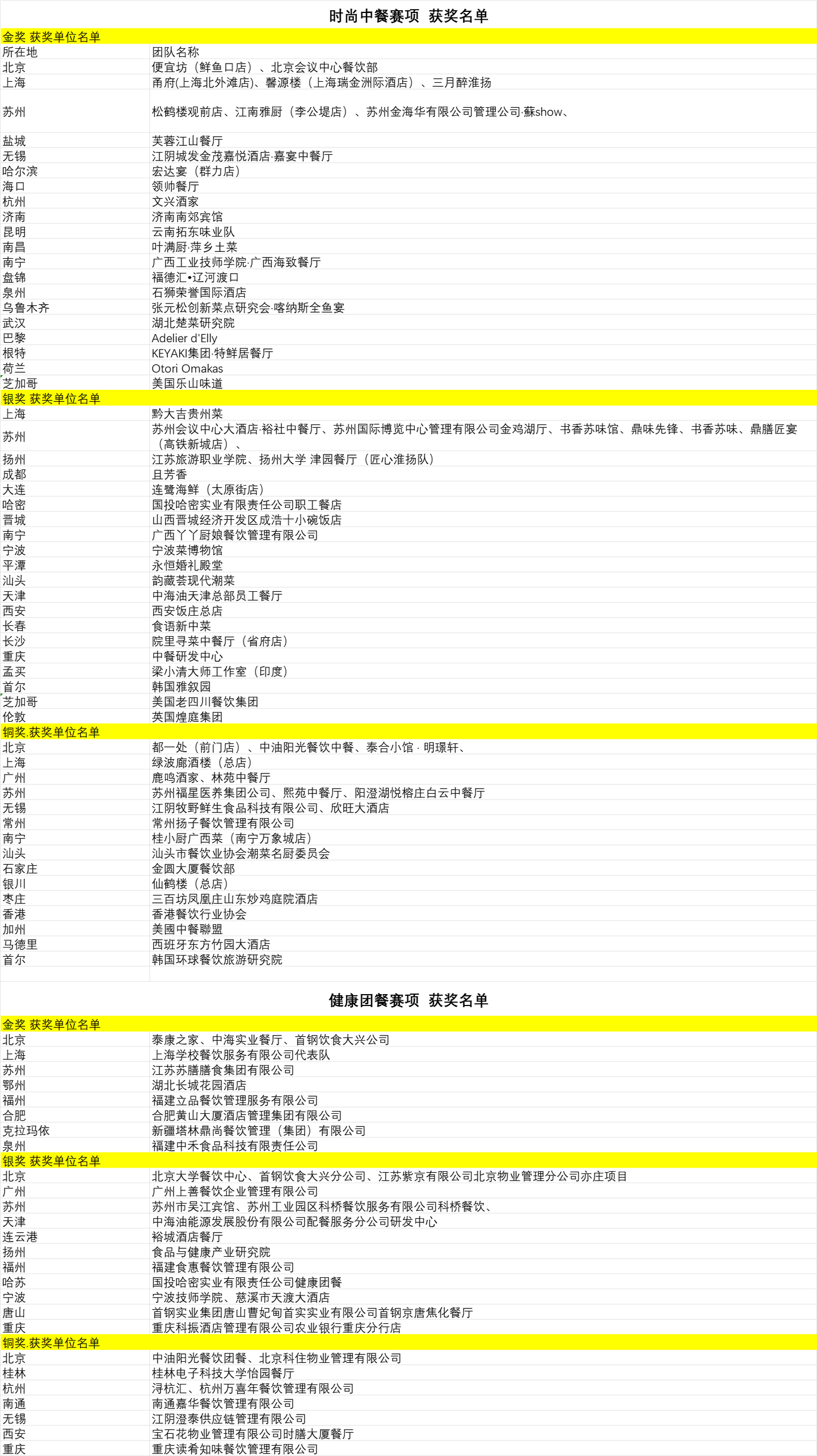 10月17日至18日,苏州国际博览中心迎来了一场中餐界的“奥林匹克盛会”——2025中餐厨艺世界锦标赛。经过评委团严格评审,最终在“时尚中餐”赛项中,25家中餐厅脱颖而出荣获金奖,26家获得银奖,21家获得铜奖;在“健康团餐”赛项中,10家团餐企业斩获金奖,15家获得银奖,9家获得铜奖。获得时尚中餐金奖的团队包括松鹤楼观前店、江南雅厨(李公堤店)、芙蓉江山餐厅、北京会议中心餐饮部、文兴酒家、便宜坊(鲜鱼口店)等知名餐饮机构。