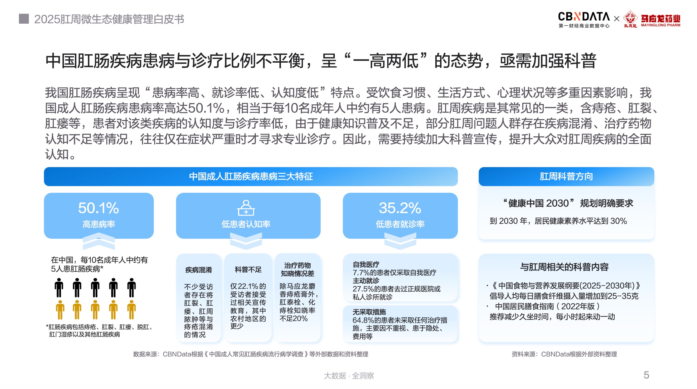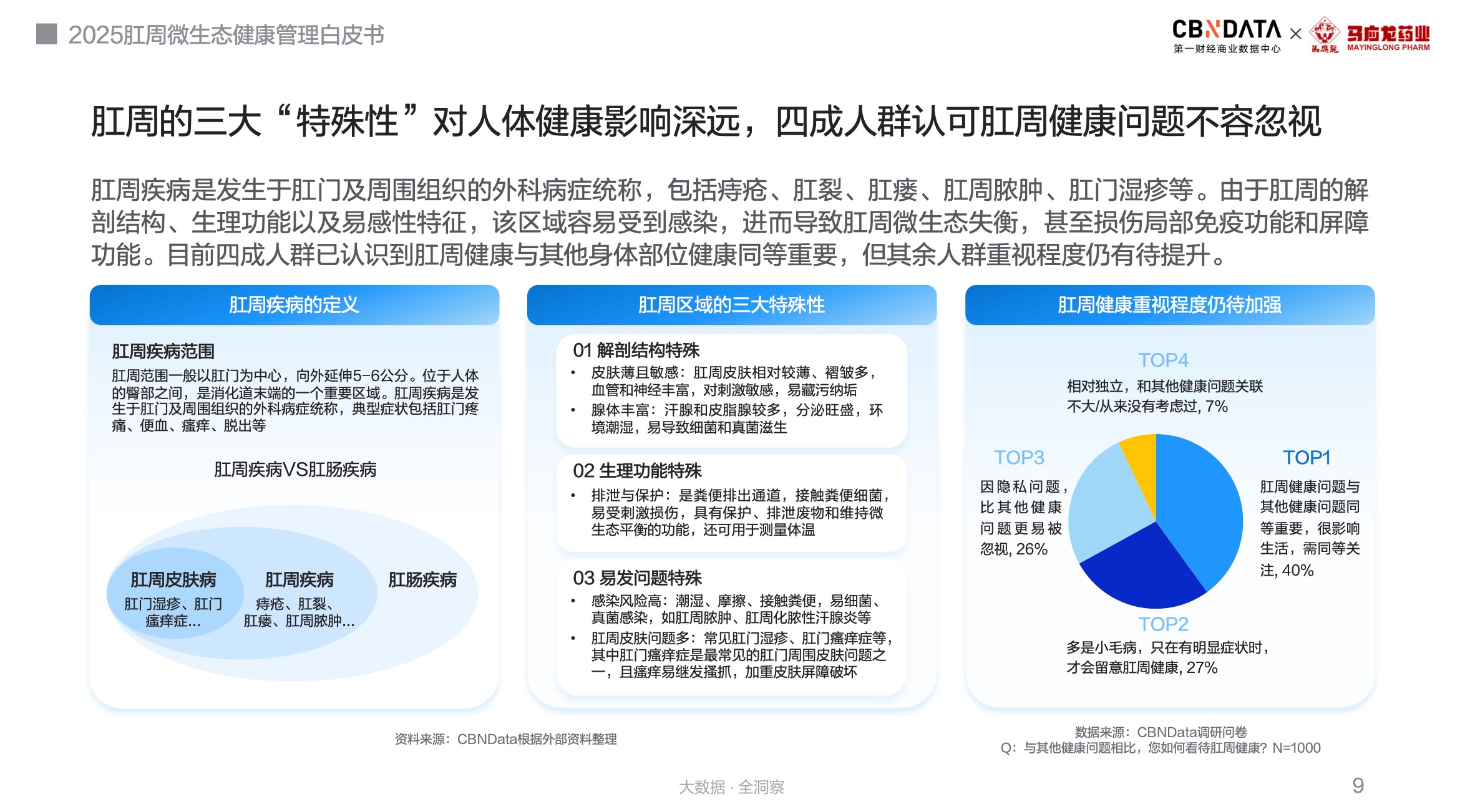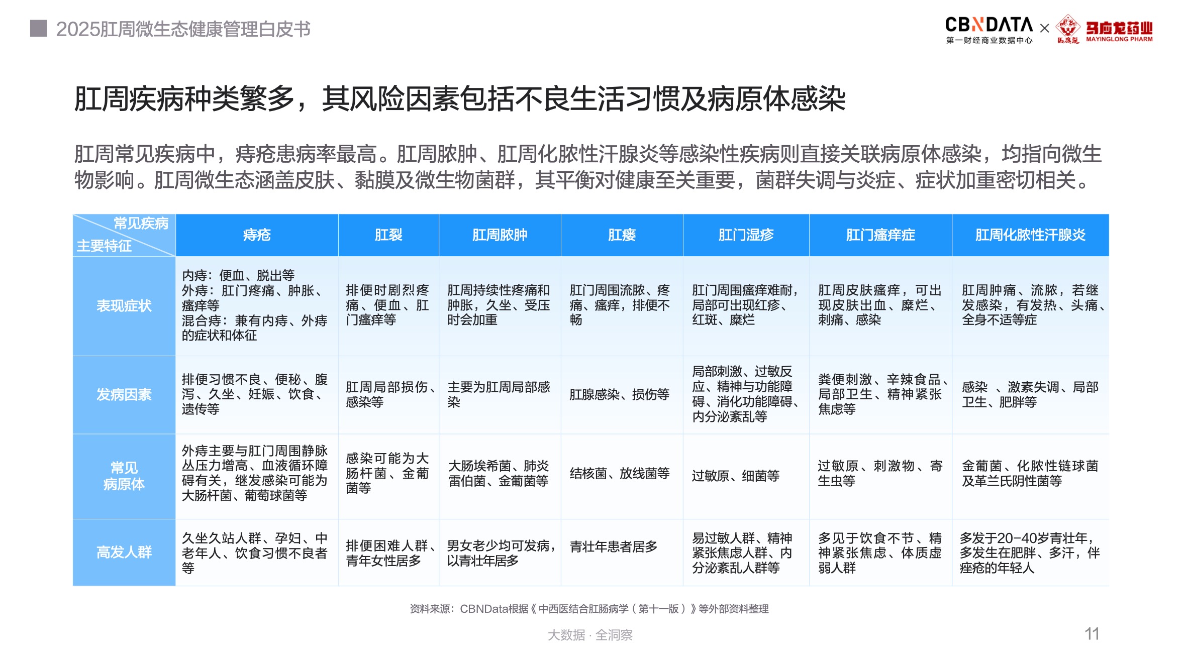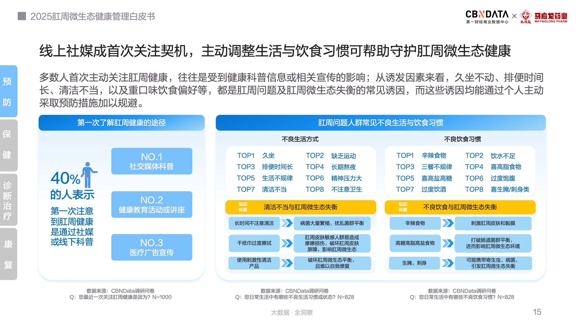 为此,马应龙药业与第一财经商业数据中心(CBNData)共同发布《2025肛周微生态健康管理白皮书》(下称“白皮书”),提出“肛周微生态”理念,旨在推动肛周健康知识的普及,助力公众告别模糊的经验认知与被动忍受,迈入以微生态平衡为核心的全周期健康管理新阶段。