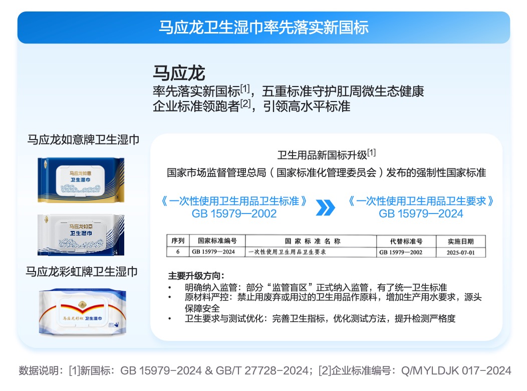 在这场变革中,马应龙作为行业引领者,率先落实新国标,通过构建安心、洁净、舒适、便捷、健康五重标准,共同守护肛周微生态健康,为消费者提供肛周健康养护新选择。