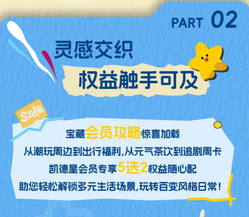 除积分福利外,会员专属“5选2权益礼包”同步上线,覆盖多元生活场景,满足不同会员需求。即日起至12月31日,凯德星会员可从五大权益中任选两项:包括JUST.F0T0专业拍照套餐、KKV定制礼品套餐、MOLLY TEA茉莉奶白专属奶茶券、同程旅行权益卡以及M芒果追剧周卡。无论是潮玩记录、出行助力,还是日常饮品、休闲追剧,都能通过权益组合轻松解锁,让会员的日常风格更多变、生活更便捷。