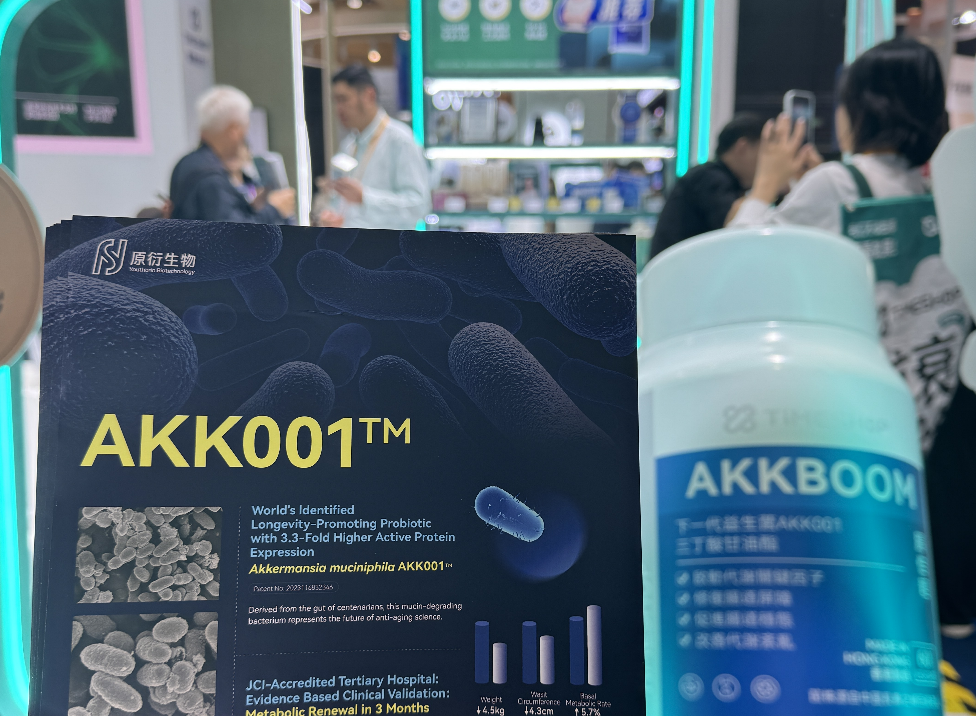 2004年荷兰团队首次发现有“下一代益生菌”“瘦子菌”之称的AKK菌(嗜粘蛋白阿克曼氏菌),但欧美菌株在亚洲人群中定植率低、效果有限。为此,上海原衍生物联合天津大学浙江研究院(绍兴)团队培育优化出国产专利菌株AKK001(专利号:2023116832346),打破欧美垄断,这一突破成为“肠倍轻AKK”在进博会的核心展示亮点。