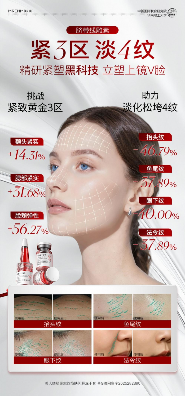 受试者反馈,产品对鱼尾纹、抬头纹、川字纹等表情纹改善尤为明显,且质地清爽不黏腻,敏感肌亦可安心使用。