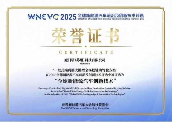 Momenta获奖证书(图源:Momenta)