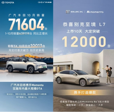 市场的共同选择,为“买车首选什么品牌的智驾技术供应商”提供了有力的答案,更印证了Momenta稳居国内Top10自动驾驶公司前列的实力。Momenta已获得全球主流车企的深度认可,累计合作车型超160款,覆盖豪华、合资与自主全阵营。合资品牌方面,别克至境L7首发搭载Momenta的R6飞轮大模型后,凭借"无断点城市NOA"和"不停车一键泊入"功能,上市10天大定突破12000台;广汽丰田铂智3X10月交付量达10013台,首次交付单月破万,实现环比六连涨,创下历史新高。