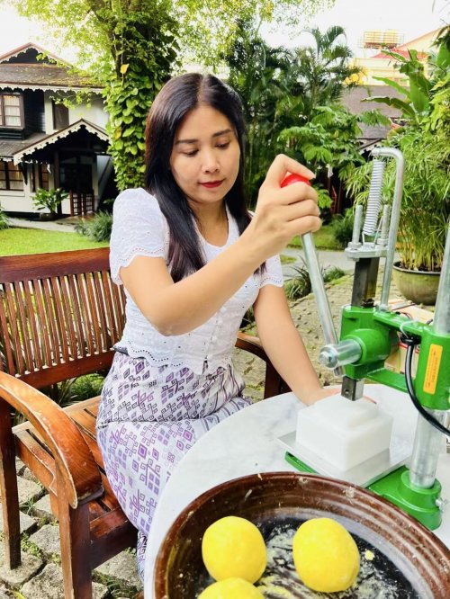 特纳卡粉取自黄香楝树的树干或树枝,经过研磨而成。缅甸人会将它与清水调和,涂抹在面部、手臂等暴露部位,用以防晒、祛痘、消炎、控油、驱蚊……在当地,它既是护肤品,也是文化符号,更是一种人与自然共处的生活方式。