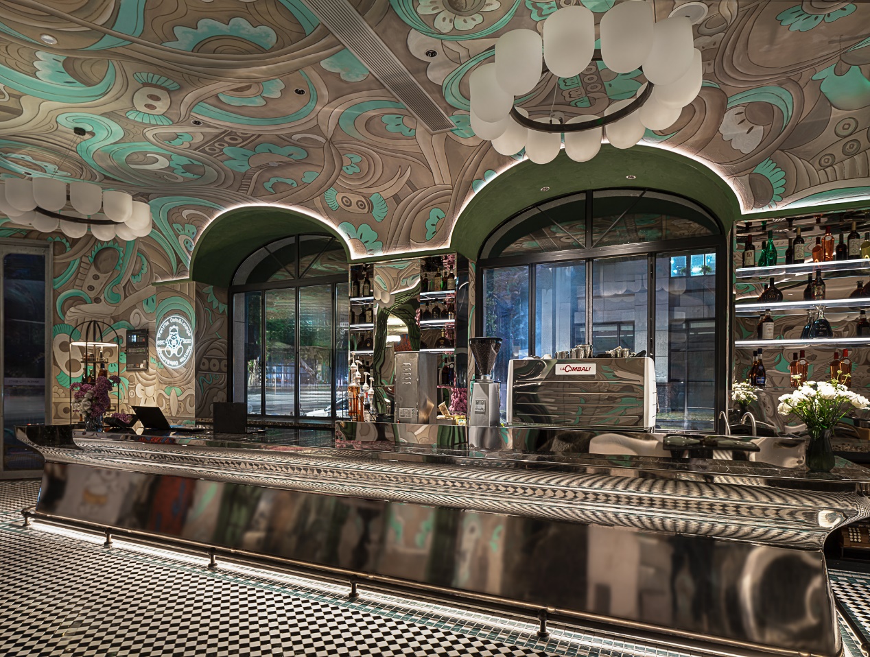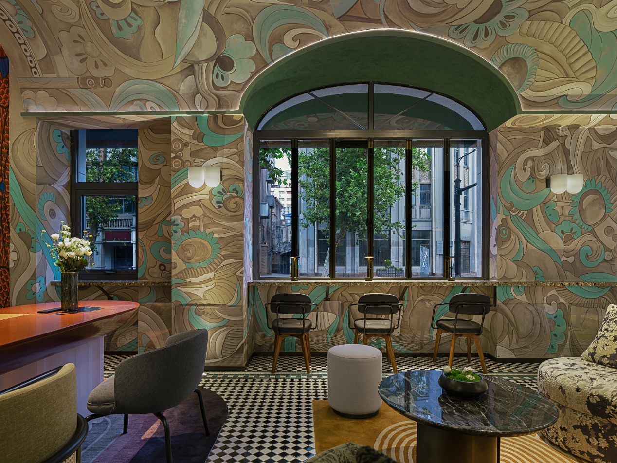 设计上,万咖啡采用开放式岛台与模块化座椅组合,鼓励住客与本地潮人互动交流。墙面装饰以南京老街巷名与现代插画结合的形式呈现,既保留城市印记,又不失年轻活力。