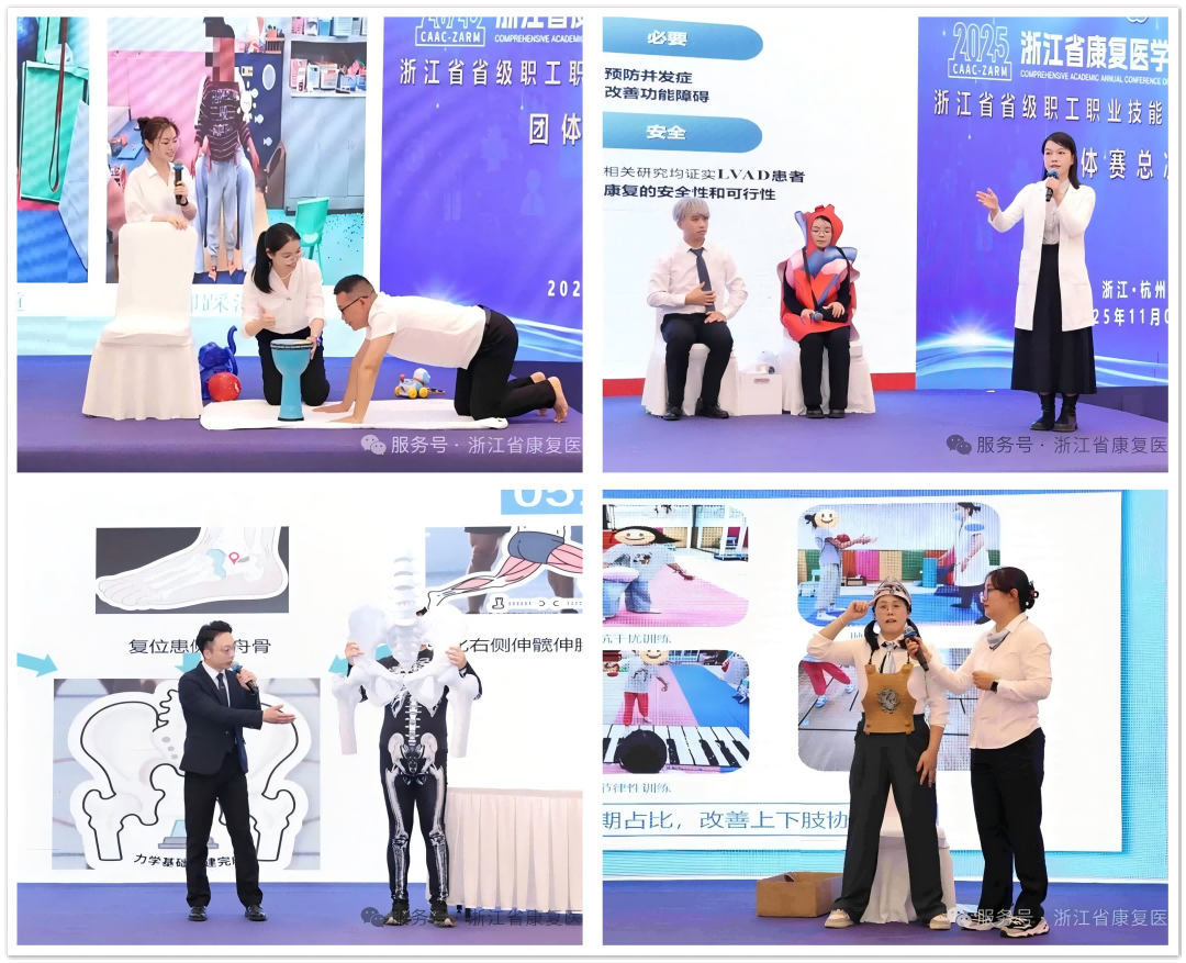 2025 浙江省康复治疗技能大赛总决赛现场,来自全省各地的康复治疗骨干围绕临床操作规范、诊疗思维创新展开激烈比拼,通过“以赛促学、以赛促练” 推动康复治疗标准化、规范化发展,为浙江康复医学事业储备了优质人才力量。