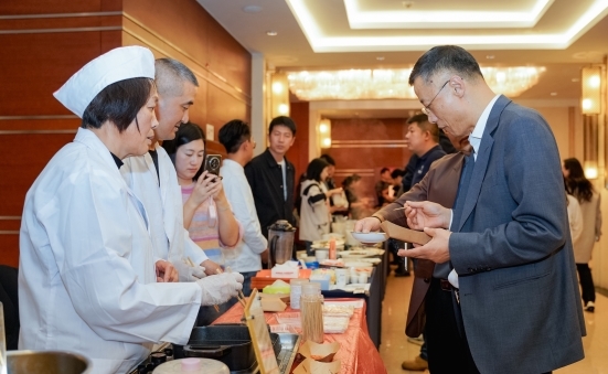 优质大米、高品质牛肉、新鲜蔬菜、现场飘香的复合调味料、现包的包子和饺子、白水烫猪肉、香甜的水果……会场一侧,现场展览展示活动也在如火如荼地进行。来自成德眉资及三州的优质农产品及上下游共70多家企业带来了他们的丰富产品,众多团餐与餐饮采购企业现场品鉴后,当场便开始了采购洽谈。