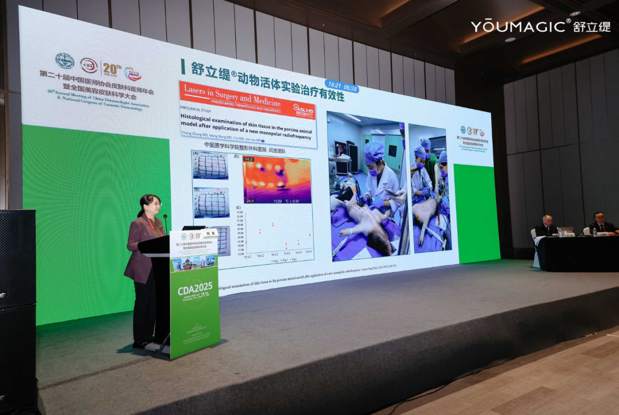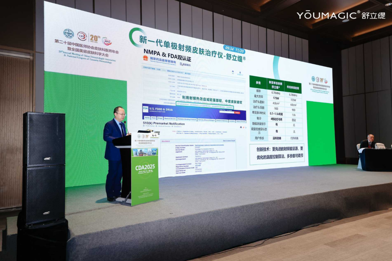 11月6-9日,第二十届中国医师协会皮肤科医师年会暨全国美容皮肤科学大会(CDA2025)在重庆盛大召开,作为国内皮肤科领域的顶级学术盛会,吸引了众多医学专家、科研学者及从业者齐聚。YOUMAGIC舒立缇亮相大会,通过科技感拉满的展位全方位展现“清华基因+医研融合”的技术创新实力,更以“新一代单极射频抗衰创新峰会”与四场技术创新小课堂双线发力,展示专业底蕴与技术深度,赢得行业广泛关注。