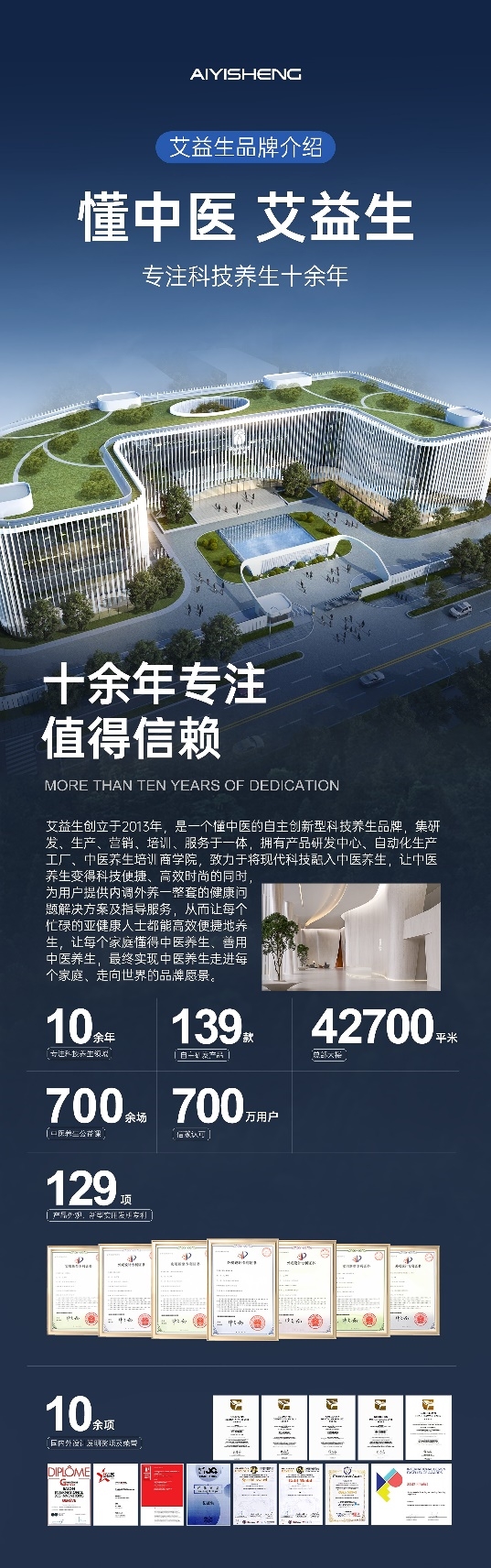 科技养生品牌艾益生创立于2013年,秉持着“科技为本,中医为翼”的品牌理念,致力于将传统中医养生与现代科技相结合。十余年来,艾益生累计研发推出130余款科技养生产品,获得过129项专利和10余项国际及国内大奖认证,为超过700万用户带来安全可靠的健康科技养生体验,成为国内大健康行业具有代表性的品牌之一。