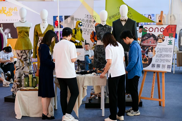 本次时尚市集是对"成华区东郊记忆艺术区机会清单"中"打造消费新场景"号召的具体实践。市集汇聚了来自彭州市、汶川县等区域的特色产品,形成了"中心城区引领消费、周边县域支撑产业"的协同发展模式。彭州服装产业集合今时秀、琪祥服饰、诺顿定制三家本土企业,在现场展示了从纺织原料到智能制造的全产业链实力;而汶川羌族品牌"尔玛的嫁衣"则将羌绣、羌纹等非遗元素与现代设计相结合,展现了民族美学在当代生活中的创新应用。