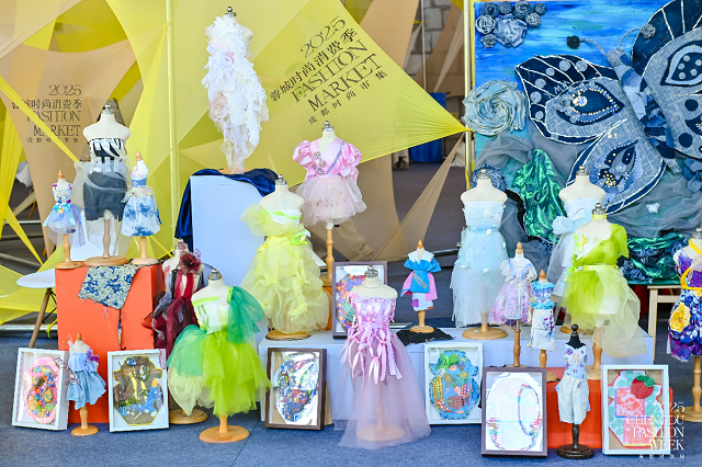 本次时尚市集最大的亮点是将传统文化与现代消费完美融合。市集专门设置了"非遗焕新"展区,四川工艺美术集团旗下品牌华夏国锦带来的蜀锦现代焕新系列成为焦点。设计师通过解构传统纹样、重组廓形结构,让传承两千余年的蜀锦以文创产品、时尚配饰等更易普及的形式呈现,使古老技艺真正"走进现代生活"。