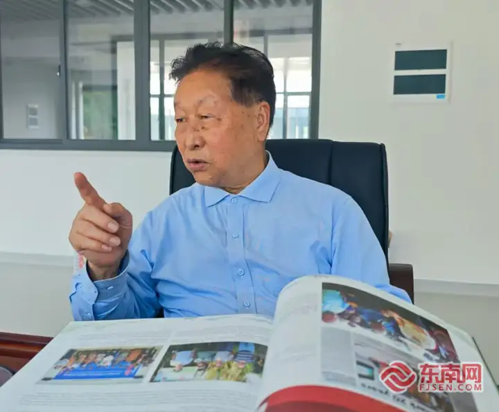 今年5月,林占熺向记者介绍当年在巴新如何克服困难种植旱稻。东南网记者 林先昌摄
