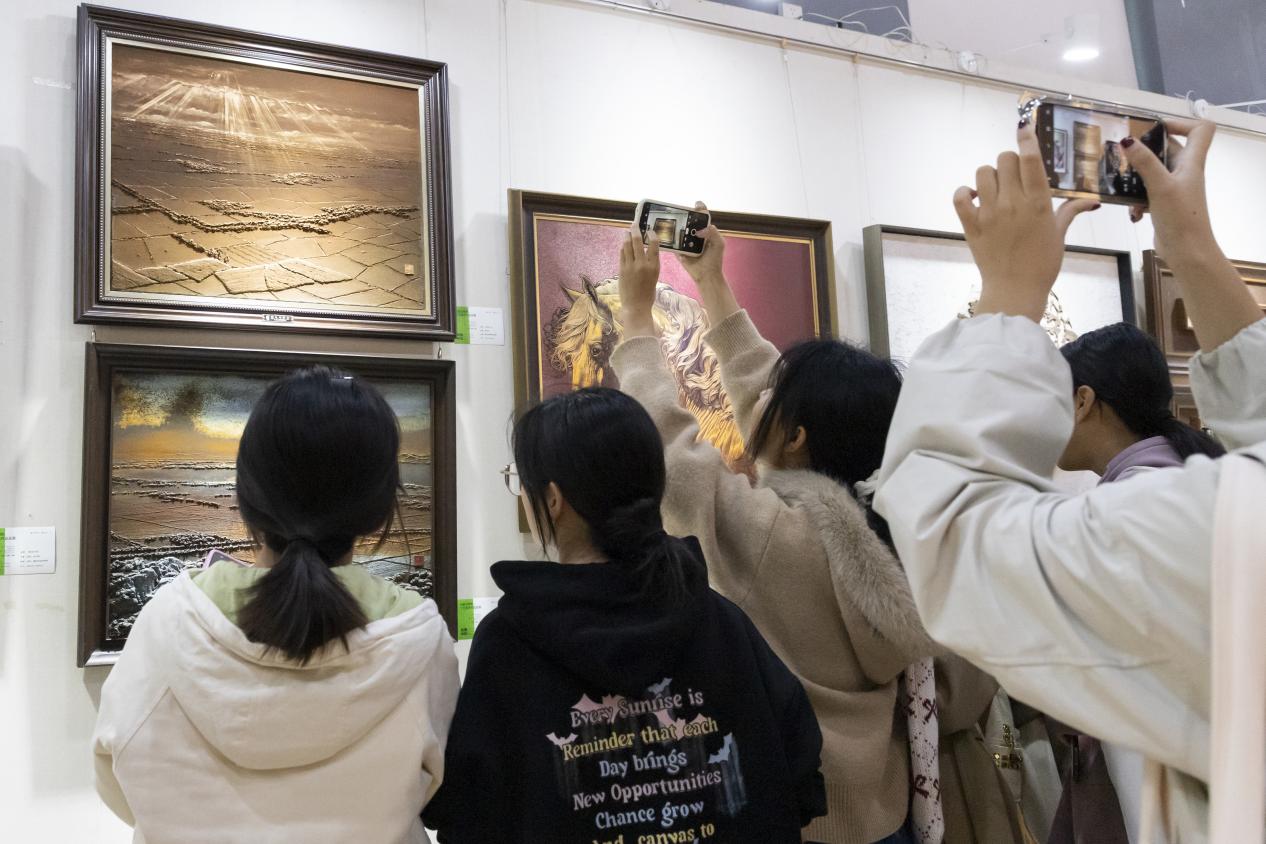 展览现场,一幅幅以传统皮艺再现的草原风光、一件件色彩绚丽的毡绣织品、一系列精雕细琢的金银器与桦树皮工艺品,无不展现内蒙古地区手工艺的独特韵味。这些作品既延续了民族技艺的血脉,也融入了现代设计的灵感,让观众在细腻的工艺与创新的形式中,领略草原文化的深邃与广袤。展览为两地文化交流搭建了重要平台,有力增进了民族之间的理解与认同。