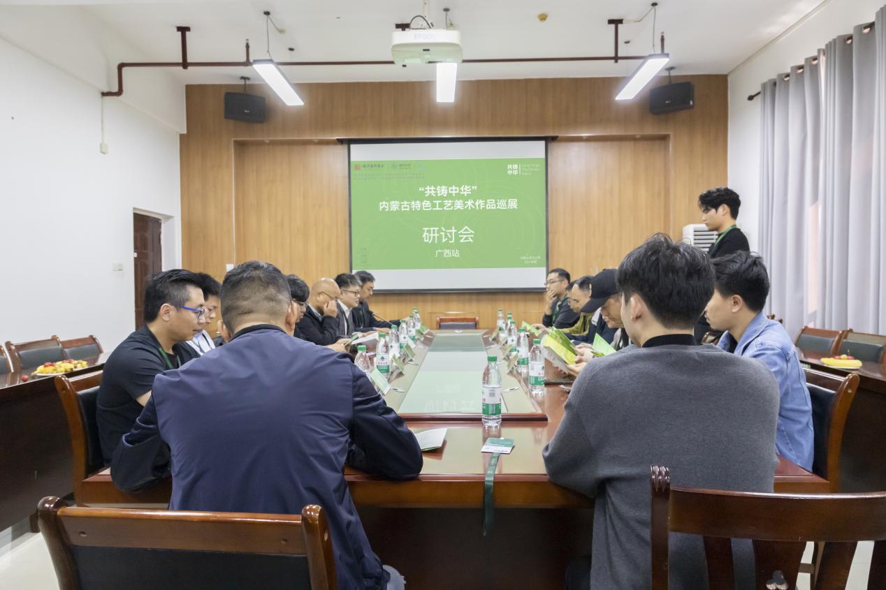 展览结束后,“共铸中华——内蒙古特色工艺美术作品巡展”学术研讨会在广西民族大学艺术学院召开。会议由该院副院长李俊主持,专家学者围绕内蒙古工艺美术的历史传承、地域特色与当代发展路径等议题展开了深入交流。