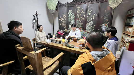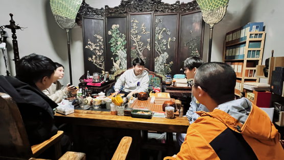 阳光透过窗帘洒进办公室,空气中弥漫着一股清新的茶香。坐在一张简约的木质桌子旁,吴佩璘正专心致志地翻阅一本厚重的古籍。桌子上的茶具素雅简洁,书架上排列着琳琅满目的文化书籍,似乎每一本都讲述着一段中华文化的深厚底蕴。正是在这样一个充满书香与文化气息的空间里,我们见到了这位既专注于国学传承,又身兼多职的文化传承人——吴佩璘。