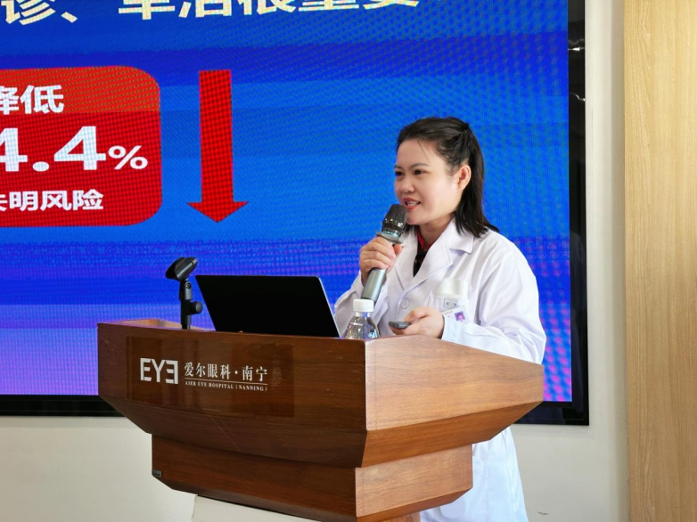 11月14日上午,在第19个世界防治糖尿病日到来之际,南宁爱尔眼科医院聚焦糖尿病患者视觉健康,成功举办“眼底一张照 眼病早知道”主题糖尿病眼病科普讲堂。医院眼底病专科副主任梁雪梅凭借丰富的临床经验,为现场市民朋友带来干货满满的糖尿病眼病防治知识分享,用专业力量筑牢糖尿病患者的“视觉防线”。