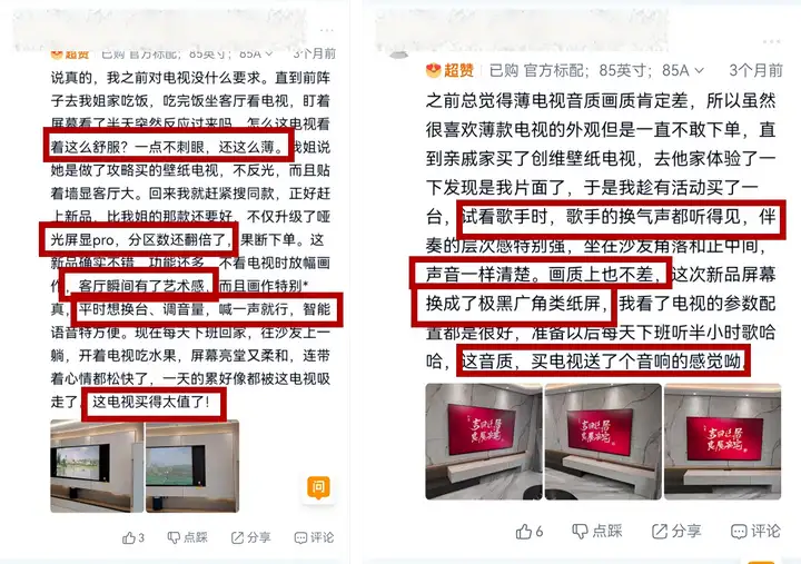 打开各大电商平台和社交媒体,关于创维壁纸电视A7F Pro系列的讨论热度不减。消费者们用实际行动投出了他们的信任票,而这些来自真实用户的声音,构建起了这款产品的口碑基石。