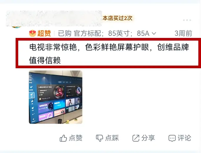 “电视非常惊艳,色彩鲜艳屏幕护眼,创维品牌值得信赖。”一位用户的简短评价道出了许多人的心声。