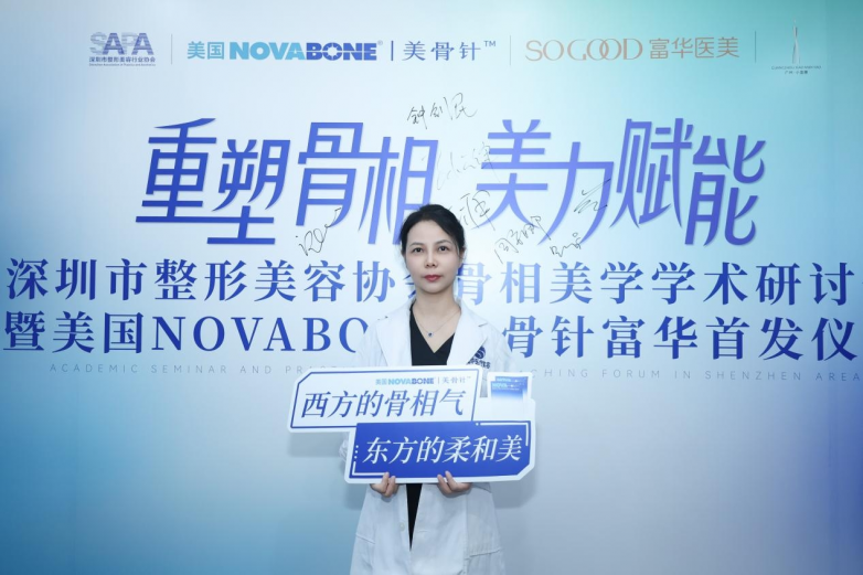 2025年4月22日,深圳——深圳富华医疗美容医院注射美容中心院长刘英受邀出席 “深圳市整形美容协会骨相美学学术研讨会暨美国NOVABONE美骨针深圳首发仪式”,凭借“骨相+皮相”联合抗衰领域的技术积累,成为美骨针官方认证医师,推动再生材料在面部年轻化场景的创新应用。