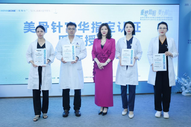 活动中,美国NOVABONE美骨针官方为刘英院长颁发“深圳区域骨相抗衰认证医师”资质,认可其在面部年轻化领域的技术实力与临床经验。