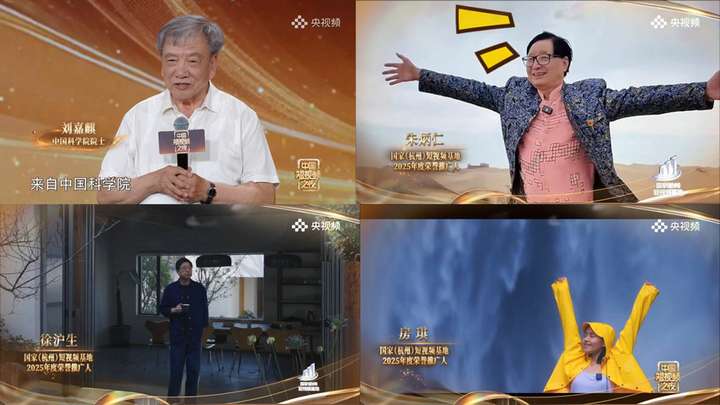 同时在《中国短视频之夜》上,短视频创作者与短视频相关领域的“头部玩家”在杭州齐聚一堂进行交流探讨,为“千行百业”注入源源不断的新鲜动力。表演艺术家游本昌以“好奇心、平常心、欢喜心”寄语青年,激励年轻一代创作者大胆拥抱热爱,勇敢创作、创新;故宫博物院第六任院长、中国文物学会专家委员会主任单霁翔,与“小邹邹”的创作者邹明磊、“小伙子”的创作者孙福恩畅谈短视频如何更好地解读和传播中华文化瑰宝;灵伴科技(Rokid)创始人兼CEO祝铭明分享将改变短视频叙事视角的AI眼镜……一幕幕名场面,让#中国短视频之夜点亮杭州#、#游本昌越活越年轻的原因#、#央视镜头下的房琪#、#100多年前的种子还开出了莲花#等话题接连刷屏。