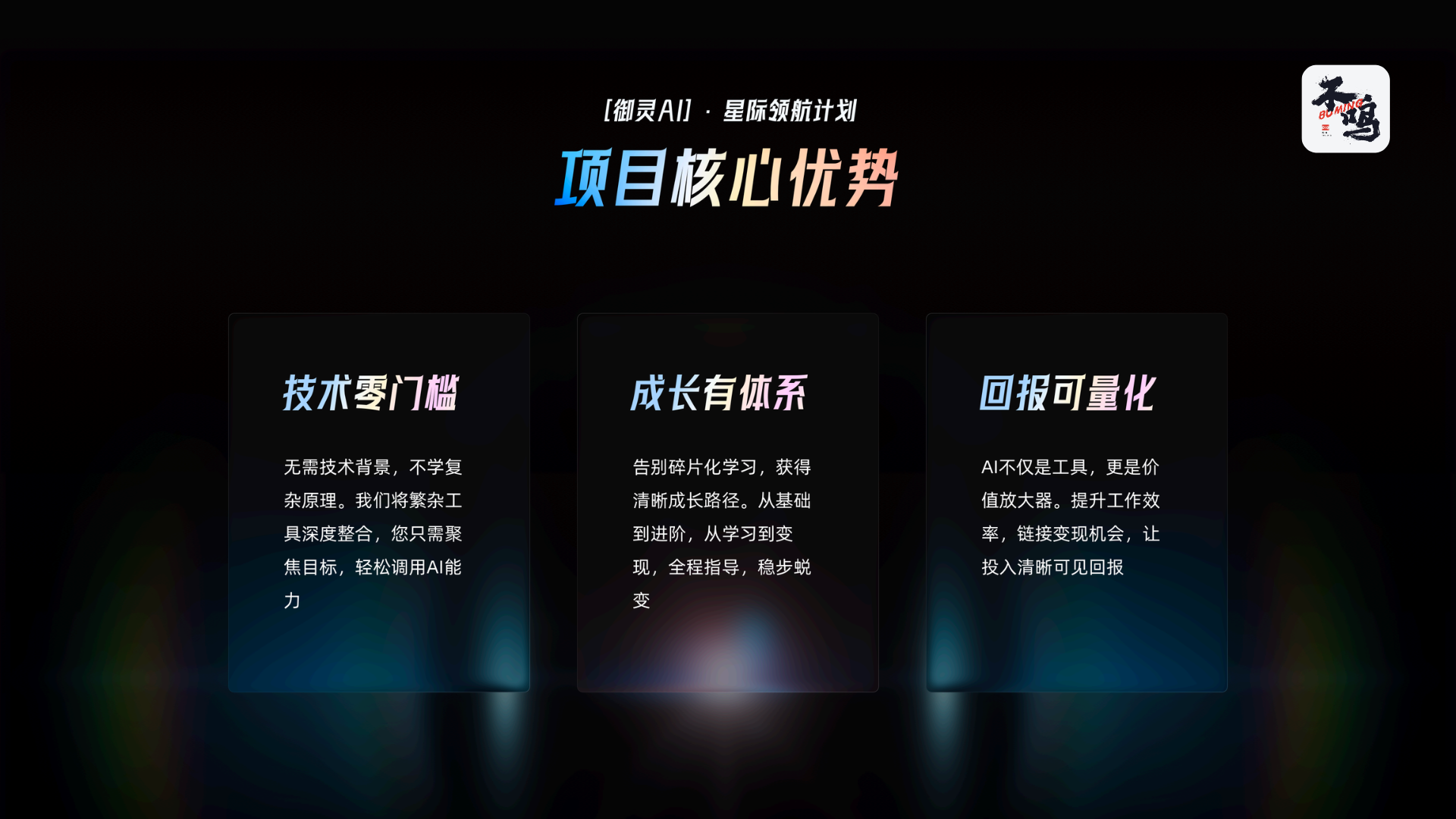 为解决上述困境,“御灵AI星际领航计划”系统性地构建了三大核心优势,确保学员能够无缝接入、高效学习并收获真实回报。