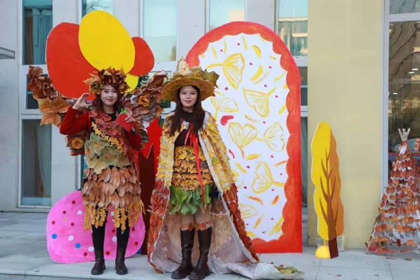 二、中班组:与秋天说再见——落叶时装秀中的自信绽放