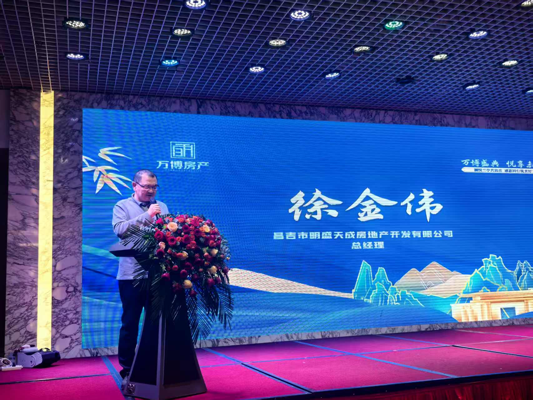 活动伊始,昌吉市明盛天成房地产开发有限公司总经理徐金伟先生率先登台致辞,他向所有与会嘉宾表示热烈欢迎与诚挚感谢。他说,“自2019年万博房产正式进驻昌吉以来,我们始终扎根这片热土,与城市共成长、与时代同频共振。多年来,从万博学府首个项目亮相到万博明月、万博兰亭、万博兰亭二期、万博澜悦、万博宸岳多个精品楼盘开发建设。万博学府、万博明月、万博兰亭2022年以来相继交付,得到广大业主的认可,2024年开始建设的万博兰亭二期已热销60%,万博澜悦项目热销80%,2025年两个项目共销售600余套,是当之无愧的销售冠军。同时,2025年新建项目万博宸岳作为昌吉首批“好房子”示范项目即将入市,我们有信心再次创造销售奇迹。”