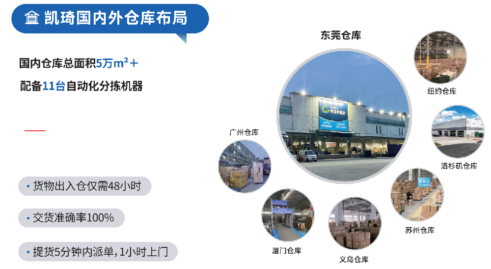 凯琦现拥有全球18+仓点布局 ,全国范围2h上门提货,全力缩短货物启运前的等待时间。