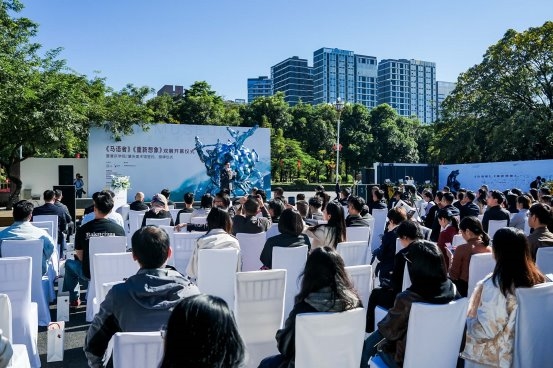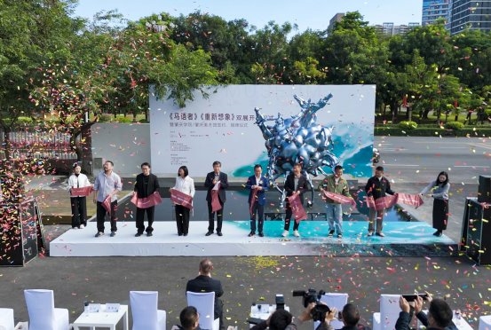 中国珠宝玉石首饰行业协会会长叶志斌,广东省广轻控股集团财务总监、广东省工艺美术协会专职副会长郭子楷,四会市委常委、统战部部长、四会市政协党组副书记蔡雪丽,福州大学厦门工艺美术学院执行院长张健,策展人苏阳,艺术家蔡江南,艺术家蔡剑军以及庄家品牌创始人、艺术总监庄庆芳共同开启剪彩仪式,拉开了庄家7美术馆年度双展《马语者》与《重新想象》的序幕。