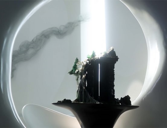 展览以一个逾百米长的空间雕塑“氤氲之形”为引导,以其流动的形态与翡翠体验馆建筑本体展开一场关于“内敛”与“外放”的哲学对话。在这里,翡翠超越了客体的局限,成为自然意志的延伸,邀请观者步入一个自由感知的维度,在原石与匠心、物质与意识之间,沉浸于一场与灵性的对话。