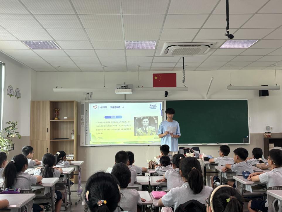 9月2日,川农管理学院“寄情苍穹·星耀华夏”宣讲团走进安吉县实验小学,以“传承两弹一星精神,厚植少年爱国情怀”为主题开展志愿宣讲活动。此次宣讲依托“两弹一星”功勋事迹讲解稿与配套PPT,旨在通过鲜活的历史脉络与动人的人物故事,让青少年近距离感受老一辈科学家的家国担当,为筑牢红色信仰根基注入青春力量。